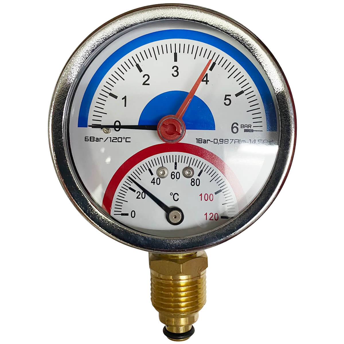 Acest produs este o combinație de manometru și termometru într-o singură carcasă.