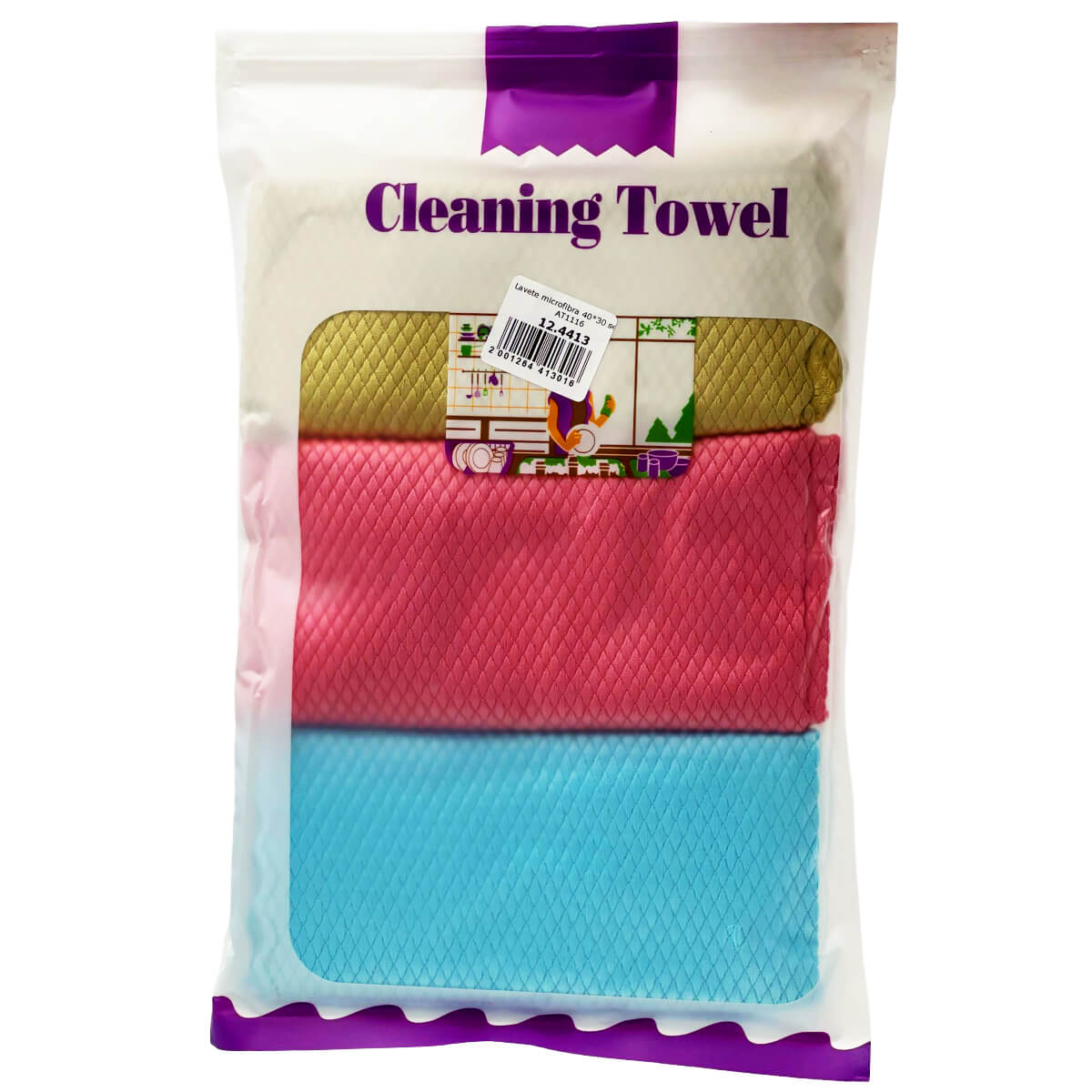 Laveta din microfibră, 40x30 cm, set 3 buc. AT1116 sunt destinate îndepărtării murdăriei, ștergerii prafului și lustruirii oricăror suprafețe. Au efect antibacterian, nu lasă urme și scame, se usucă instantaneu.