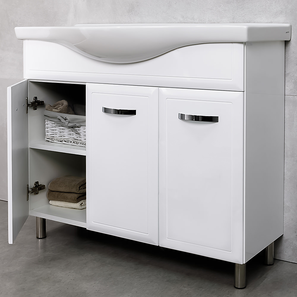 Dulapul sub lavoar BAYRO ALLURE DUO pentru baie 958 x 343 x 810 mm alb adaugă un farmec elegant băii tale. Realizat din PAL vopsit și fațadă din MDF vopsit, acest dulap cu suprafață lucioasă este perfect pentru o baie modernă. Cu închidere lentă și montare pe pardoseală, acest dulap alb, cu deschidere pivotantă, oferă spațiu de depozitare și funcționalitate într-un design minimalist. Garanție de 24 de luni.