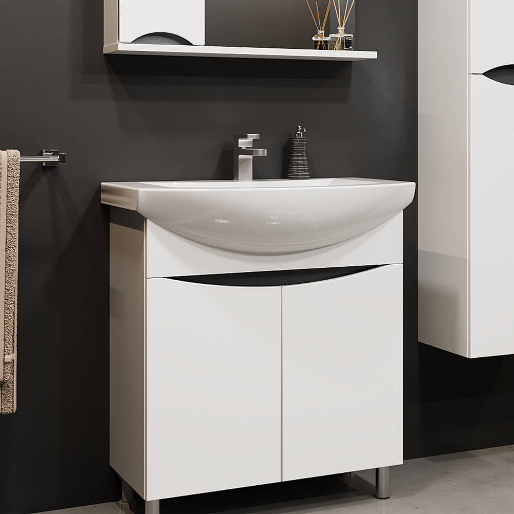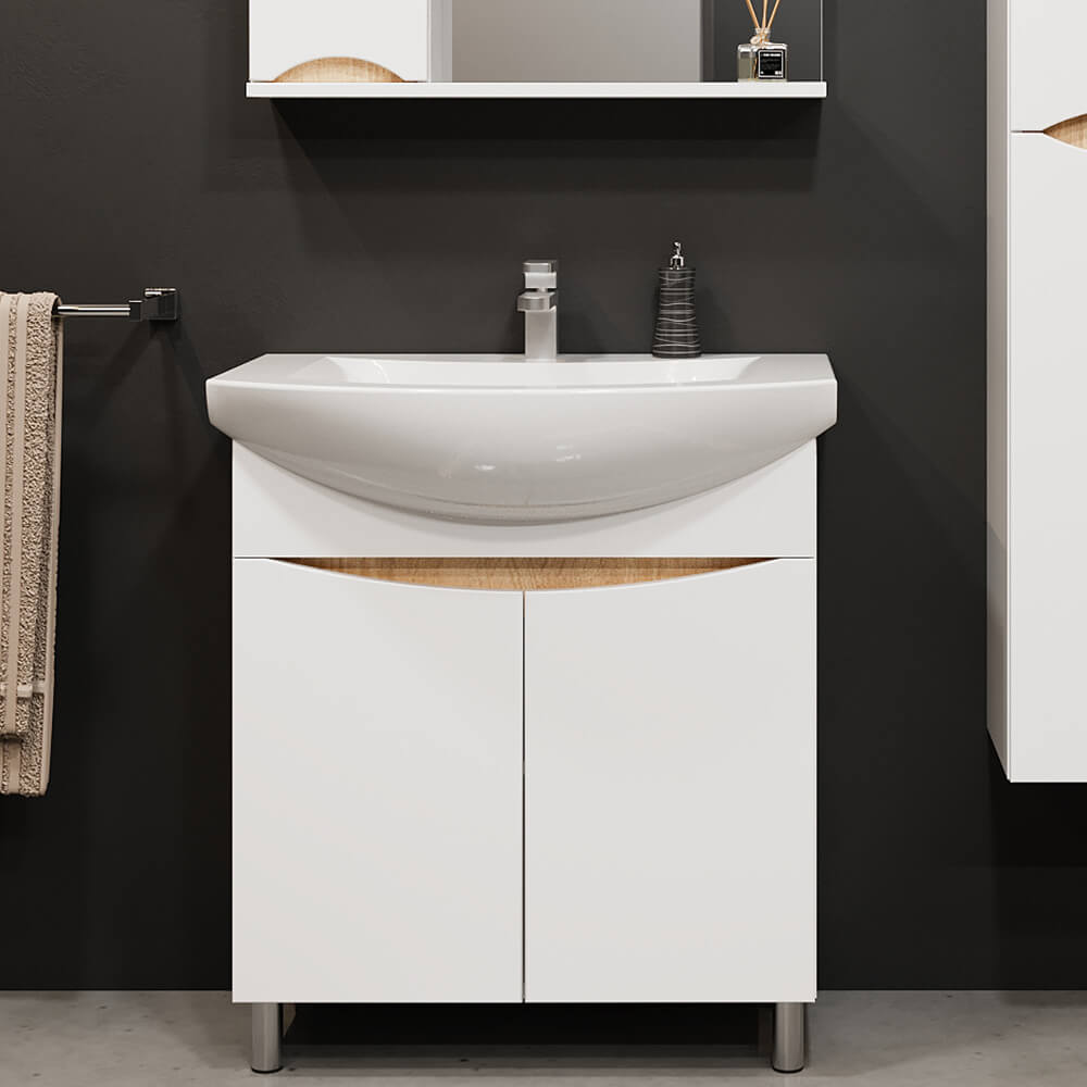 Dulap sub lavoar BAYRO Elara Duo 616×810 mm alb mat este o soluție de pardoseală pentru baie, concepută pentru a organiza eficient depozitarea și pentru a menține ordinea în zona lavoarului.