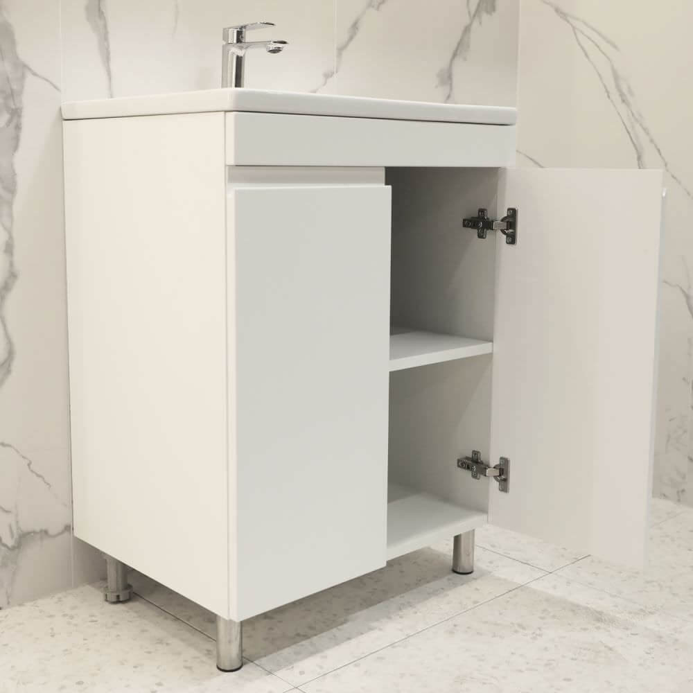 Dulap sub lavoar BAYRO Studio Duo 602x460x820 mm alb mat este o soluție stilată și funcțională pentru baie. Acesta îmbină designul modern, materiale de calitate și funcționalitate, oferind o organizare mai bună și confort în baia ta.