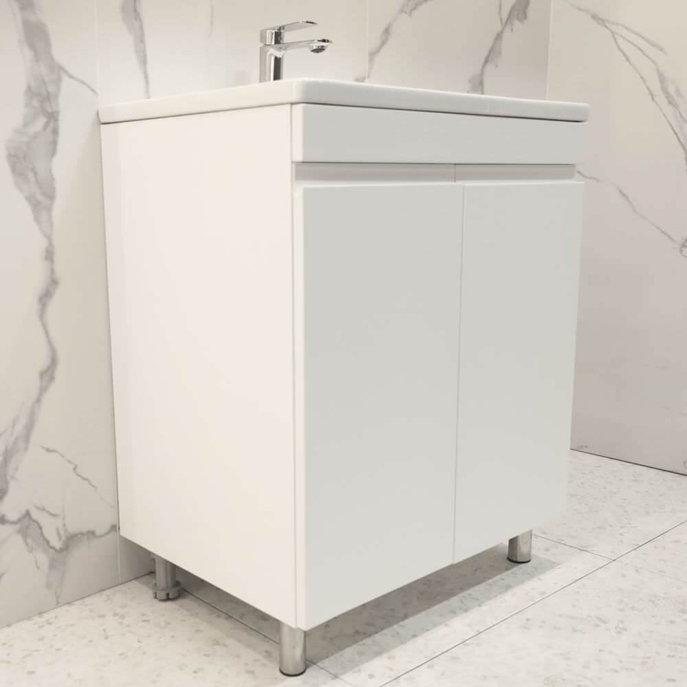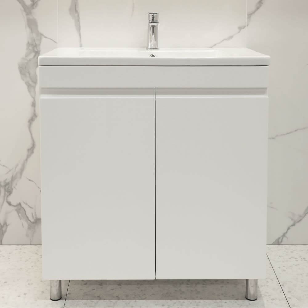 Acest dulap este ideal pentru interioarele moderne și oferă spațiu suplimentar de depozitare în baie.