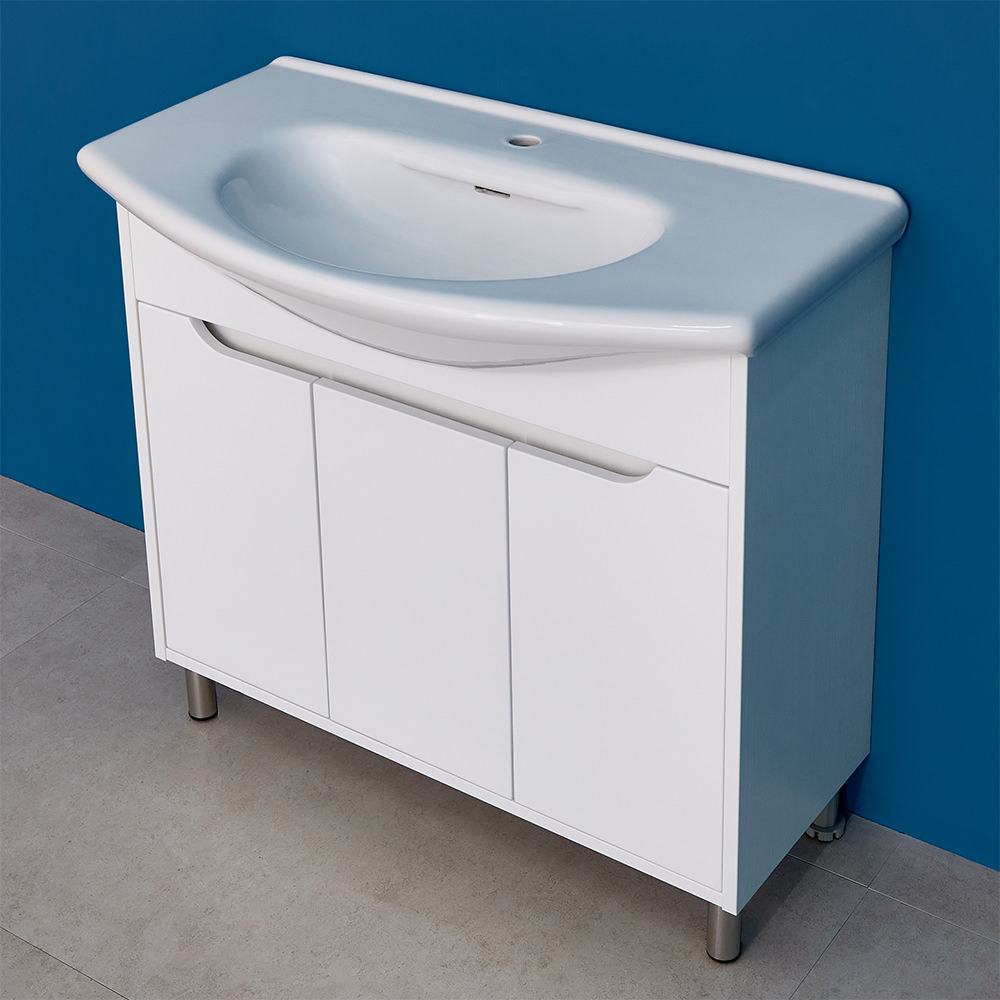 Dotat cu un sistem de închidere lentă, dulapul minimizează zgomotul și uzura, asigurând o durată de viață îndelungată. Tipul de montaj pe podea este stabil și simplu de instalat, iar ușile se deschid larg pentru a oferi acces complet la articolele de baie stocate.