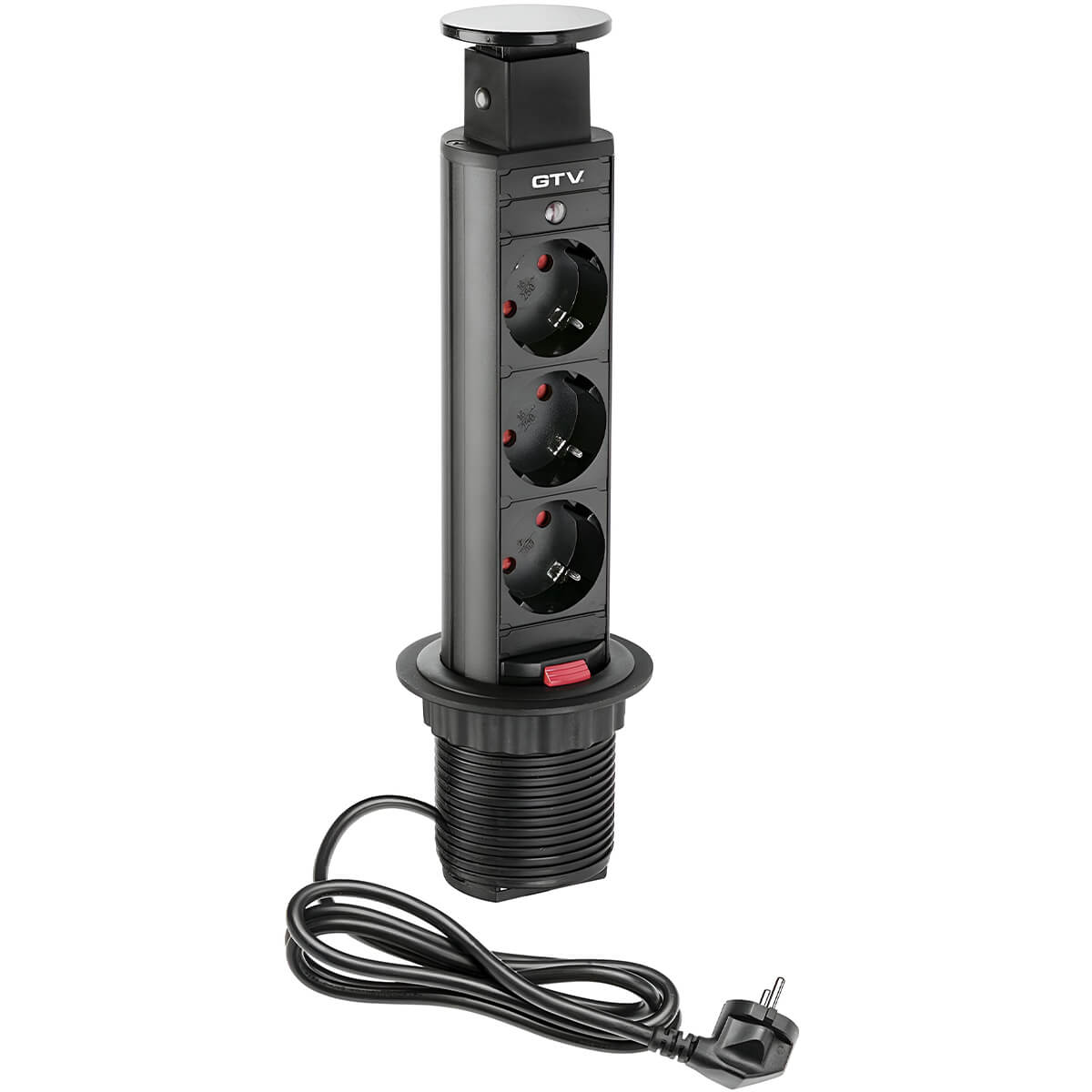 Prelungitorul vertical încastrat GTV D-60 mm este o soluție modernă și practică pentru organizarea spațiului de lucru sau de bucătărie. Este echipat cu trei prize SCHUKO și un capac elegant, care ascunde prelungitorul atunci când nu este utilizat.