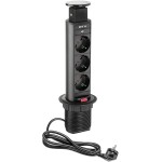 Prelungitor încastrat vertical GTV D-60 mm, 3 prize SCHUKO, negru, AE-BPW3S60-20