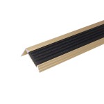 Prag din aluminiu pentru trepte P6 Dekora cu bandă antiderapantă, Gold Matt, 46x30 mm, 0.9 m, unghiular - Acordă treptelor din interior, cât și celor din exterior, un aspect deosebit. Pe lângă rol funcțional, are și valoare decorativă. Se montează cu diblurile din set.