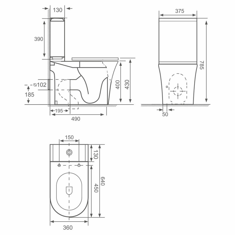 Vas WC compact (closet) Nomi Grande Rimless ieșire orizontală, alimentare inferioară cu apă, capac soft close - Fabricat din faianță, cu intrare de apă prin partea inferioară și buton de scurgere mecanic. Dotat cu acoperire antibacteriană care împiedică dezvoltarea microorganismelor.