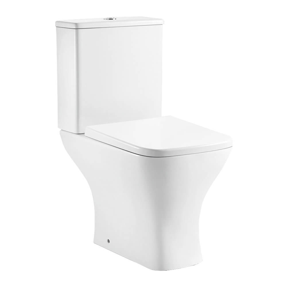 Vas WC compact (closet) Nomi Podio sistem de scurgere Rimless ieșire orizontală, alimentare inferioară cu apă, capac din PP soft close