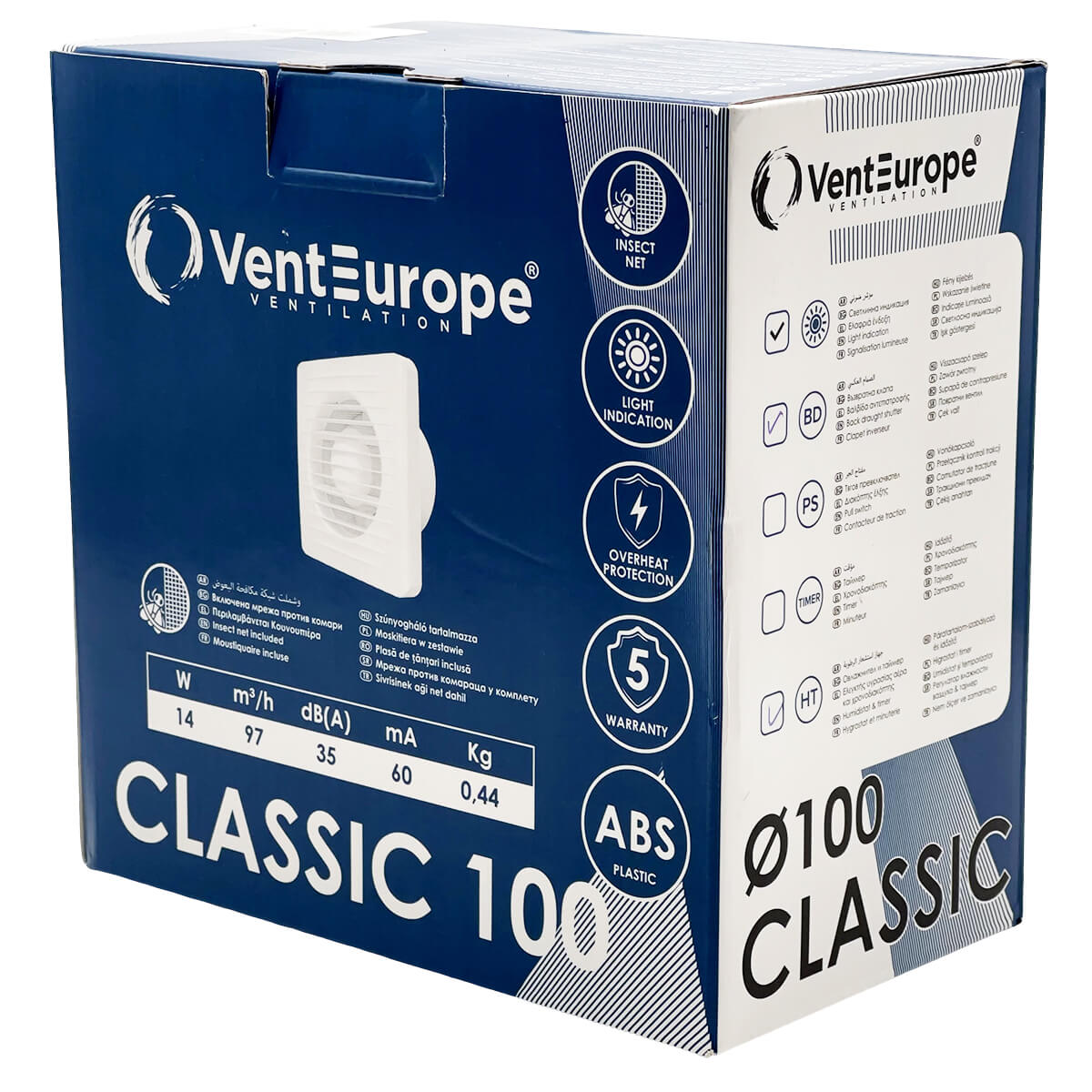 Ventilator de evacuare axial Vent Europe CLASSIC 100 d.100 mm, 14 W, cu indicator, supapă de reținere și senzor de umiditate, alb, din plastic - Pentru informații suplimentare, vă rugăm să contactați operatorul magazinului la numărul de telefon 0 (60) 439 390.