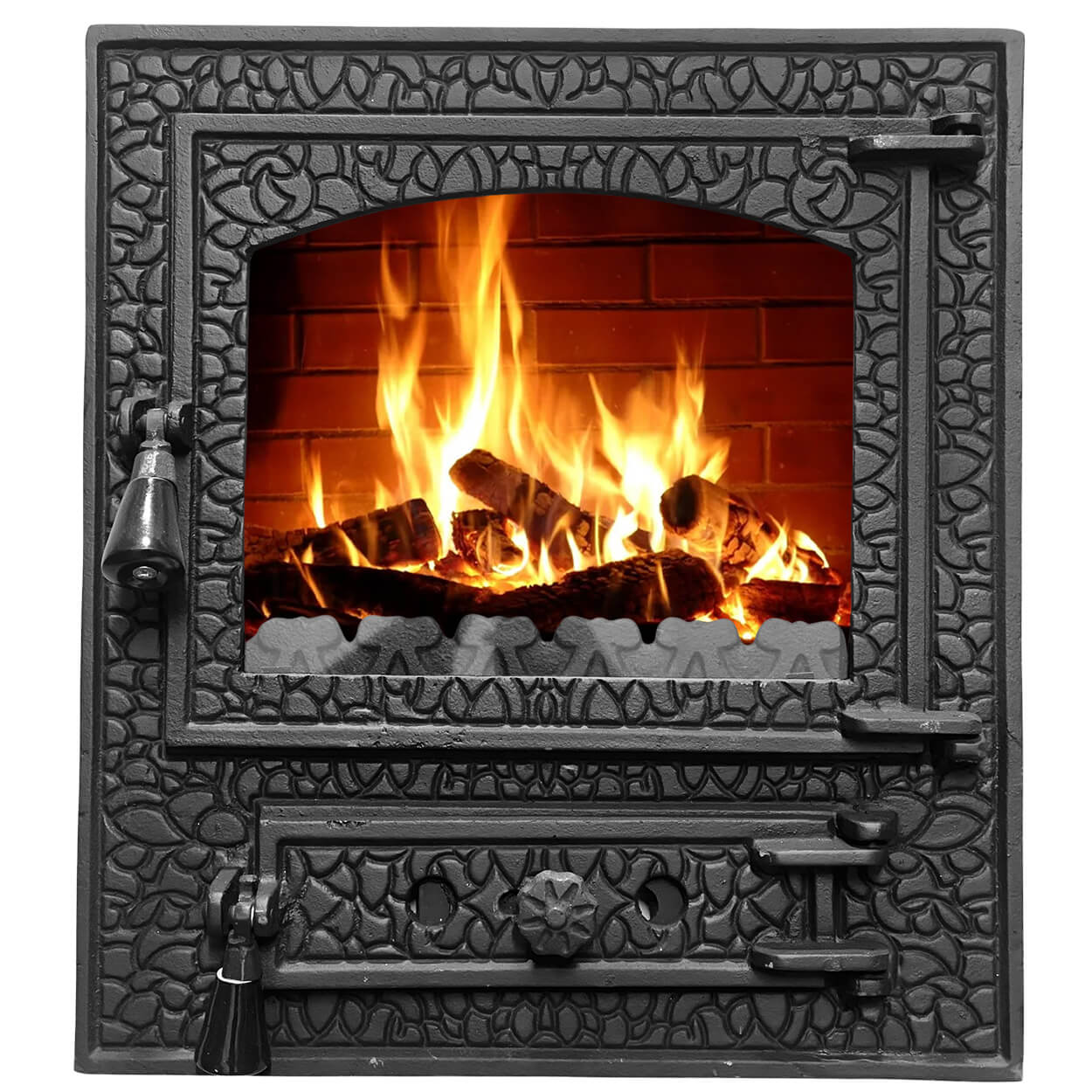 Дверца чугунная для печи со стеклом Rustic среднего размера 580 х 490 мм - стильное и практичное решение для вашей печи. Изготовлена из прочного чугуна и стекла, обеспечивая прекрасный обзор пламени и добавляя эстетику. Гарантирует надежность и долговечность.