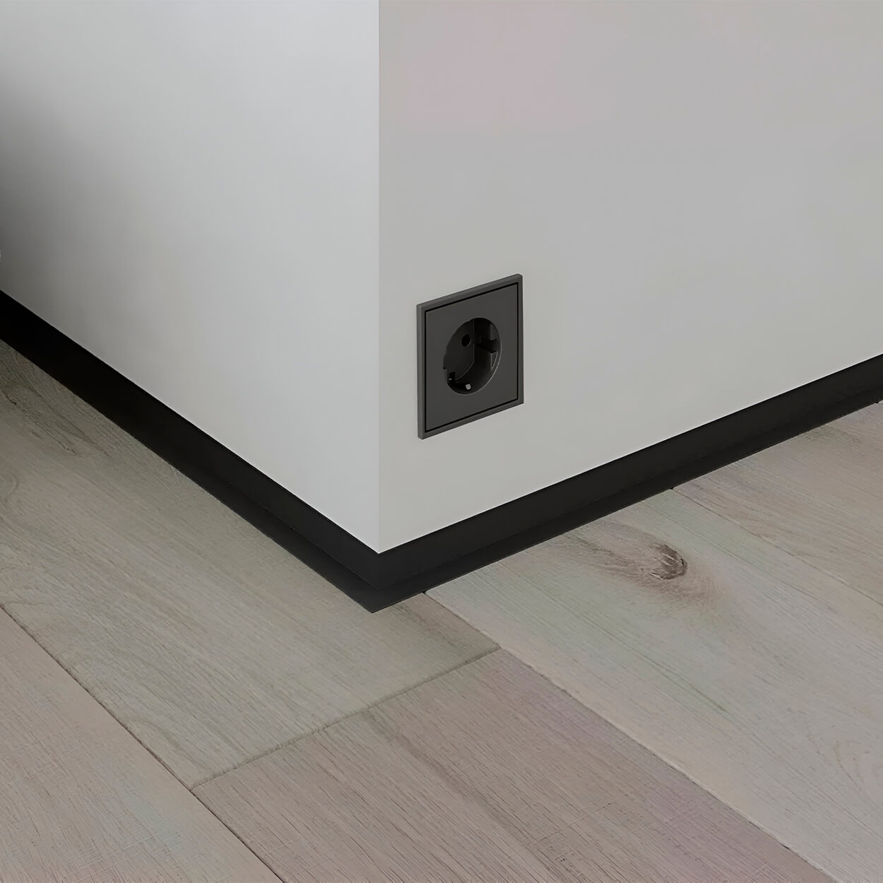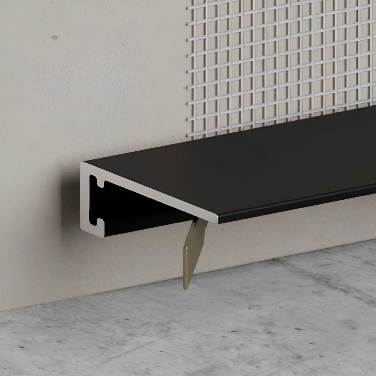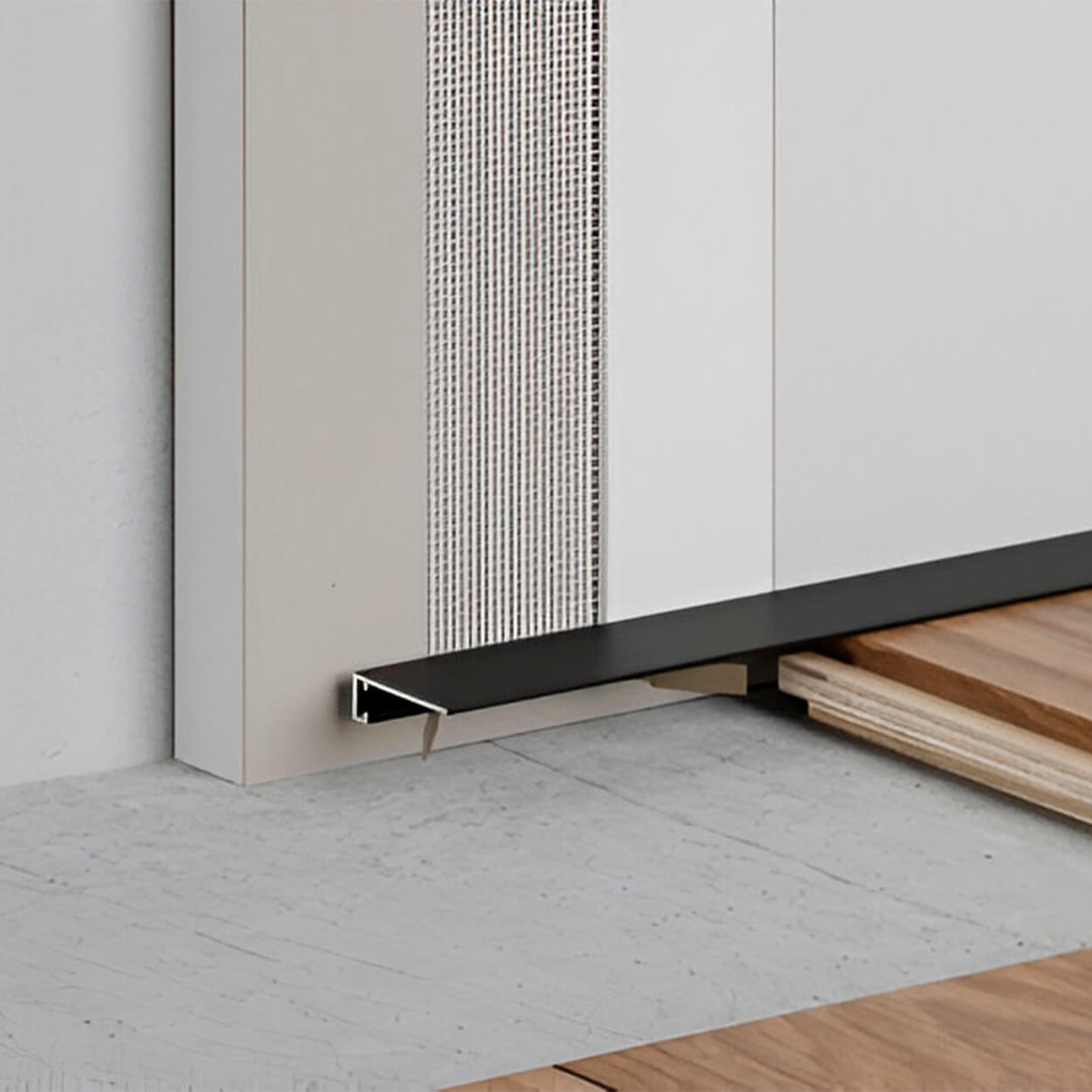 Плинтус алюминиевый напольный AL 16, черный матовый, 6,5 х 16 х 2500 мм - Предназначен для закрытия технологического шва при укладке отделочного пола и является упрощенной альтернативой скрытому плинтусу.