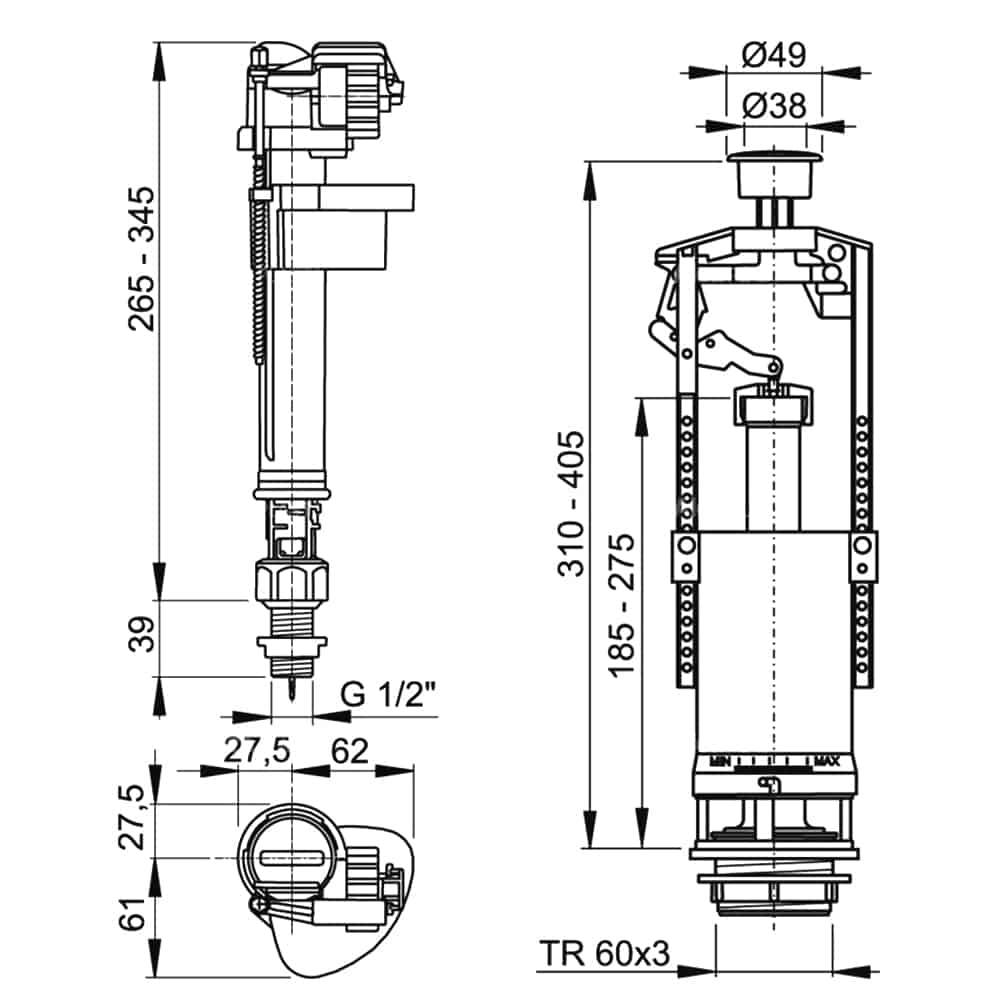 Арматура AlcaPLAST нижний подвод 1/2" с кнопкой хром (SA2000S). Высококачественная модель с механическим механизмом слива. Режим слива воды: 6 л/стоп. Прочный ABS материал. Изготовлена в Чешской Республике. Гарантия 24 месяца. Отличный выбор для вашей ванной комнаты.
