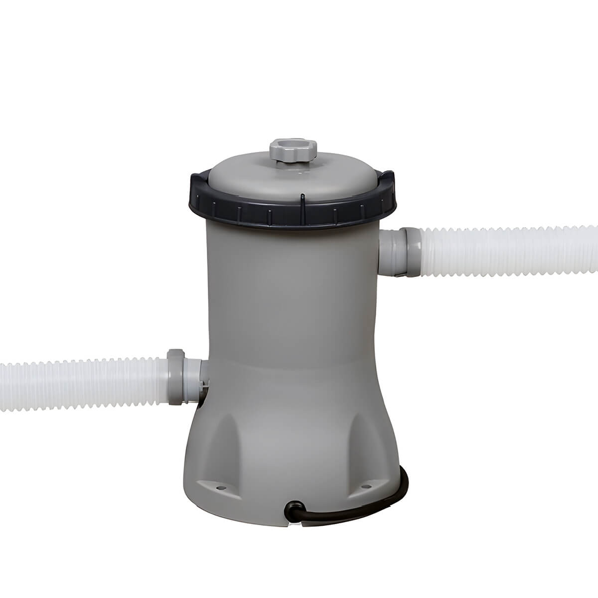 В комплект входит картриджный фильтр-насос с производительностью 2006 литров в час, что обеспечивает чистоту воды, а также удобная лестница для комфортного доступа в бассейн. Сливной клапан с адаптером позволяет легко слить воду в любое удобное место.