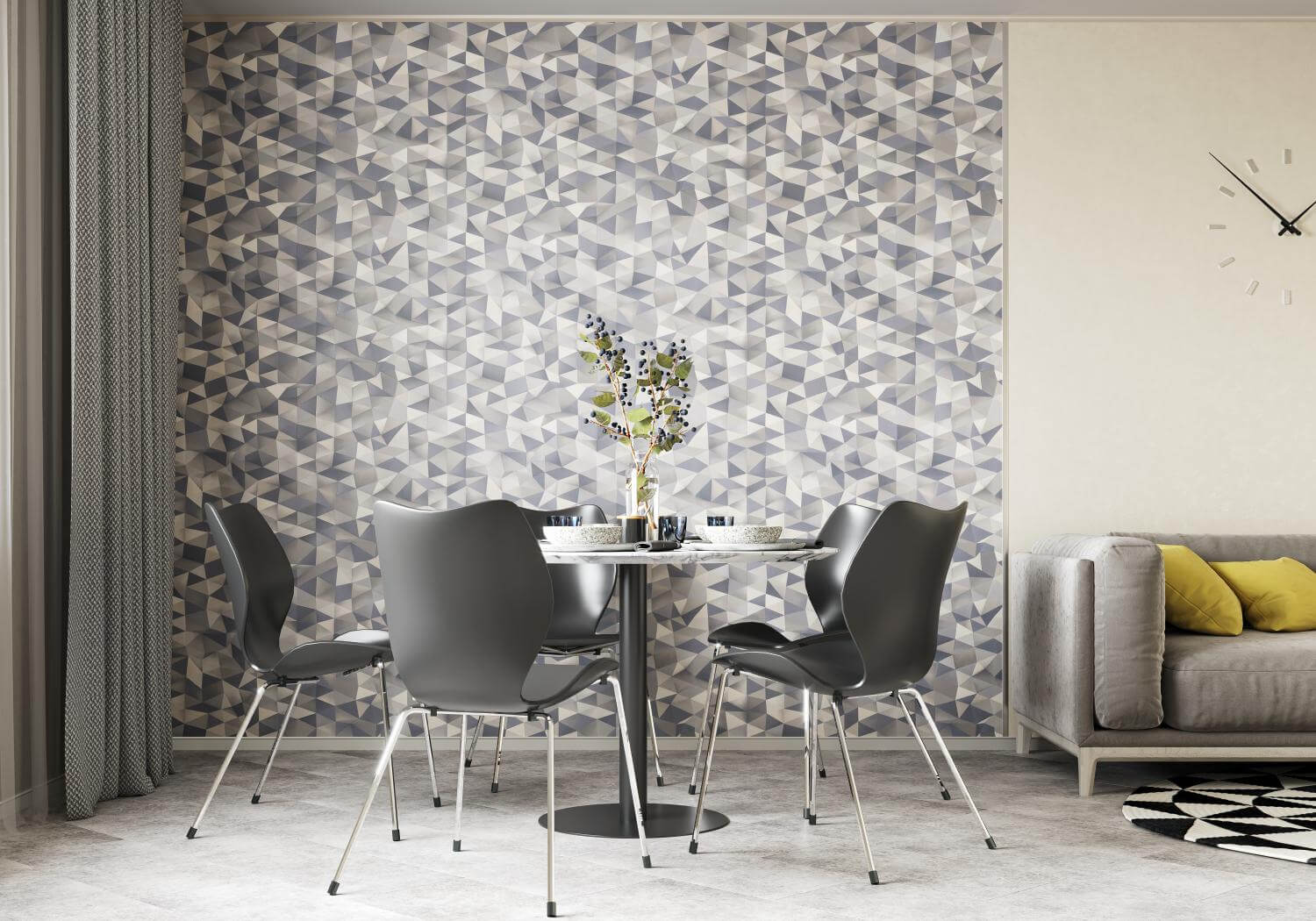 Обои A PALITRA Home Illusion с геометрическим рисунком в серых тонах идеально подойдут для создания современного интерьера. Уникальный дизайн с треугольниками и 3D-эффектом добавляет глубины и динамики в пространство, делая его стильным и выразительным.