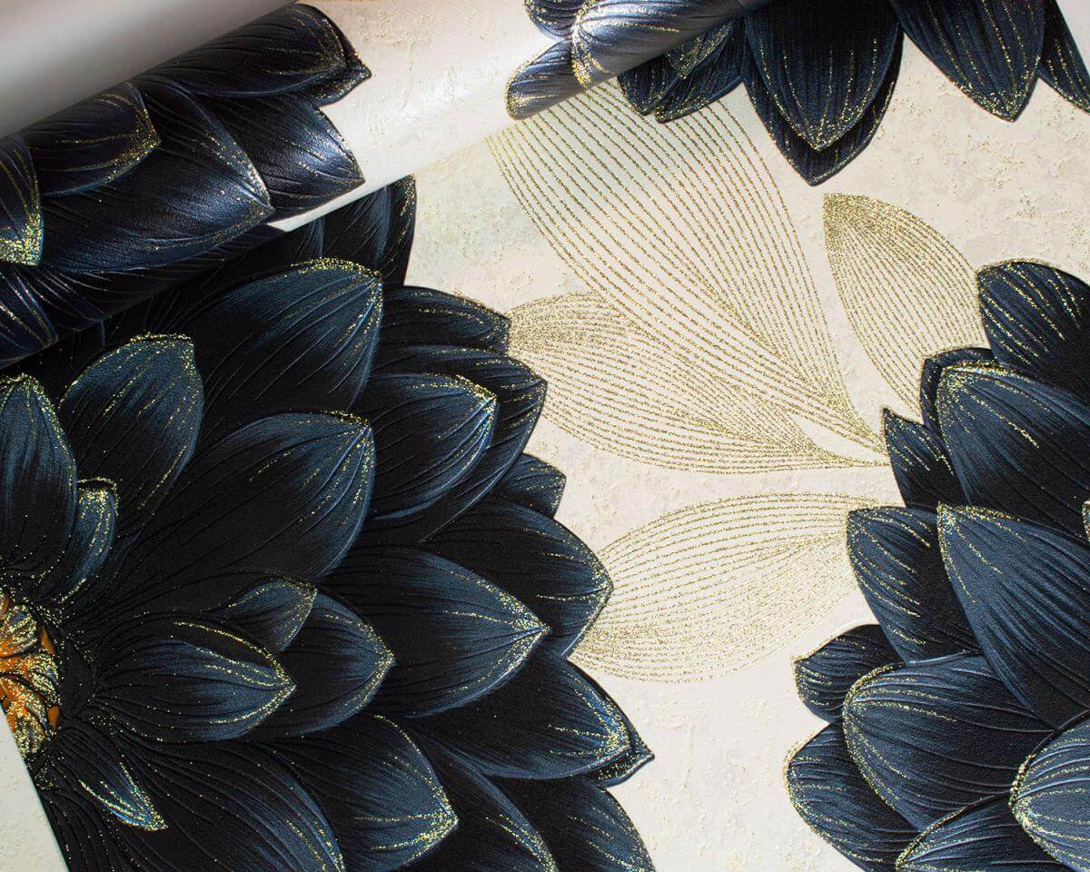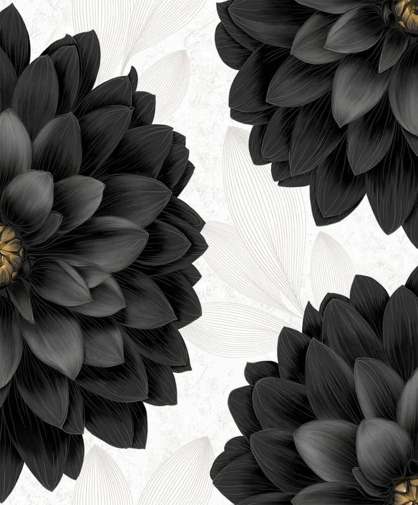 - Дизайн: Крупные черные цветы на светлом фоне создают современный акцент, гармонично дополняя различные стили интерьера.