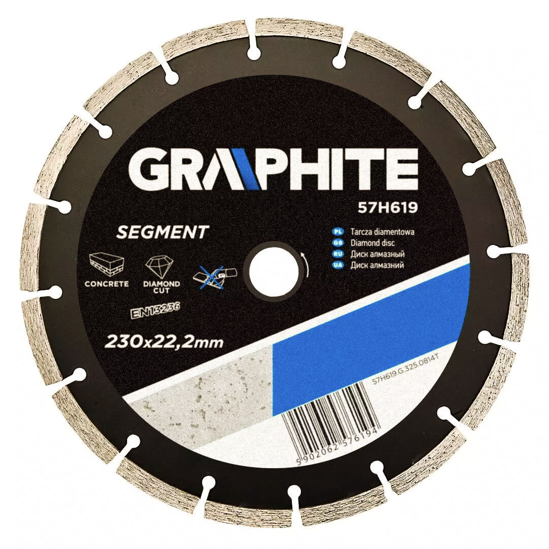 Диск алмазный сегментный GRAPHITE 57H619 выполнен из высококачественного сплава марганцевой стали, предназначен для использования на ручных углошлифовальных машинах при резке бетона, гранита, мрамора, кирпича, керамической плитки и прочих твердых строительных материалов. Алмазные сегменты высокой прочности обеспечивают эффективную резку. Диск алмазный сегментный GRAPHITE подходит для тяжелых строительных работ.