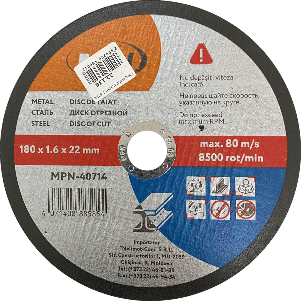 Круг отрезной по металлу MPN, 180 мм x 1,6 мм x 22,2 мм, для УШМ (Арт. 40714)