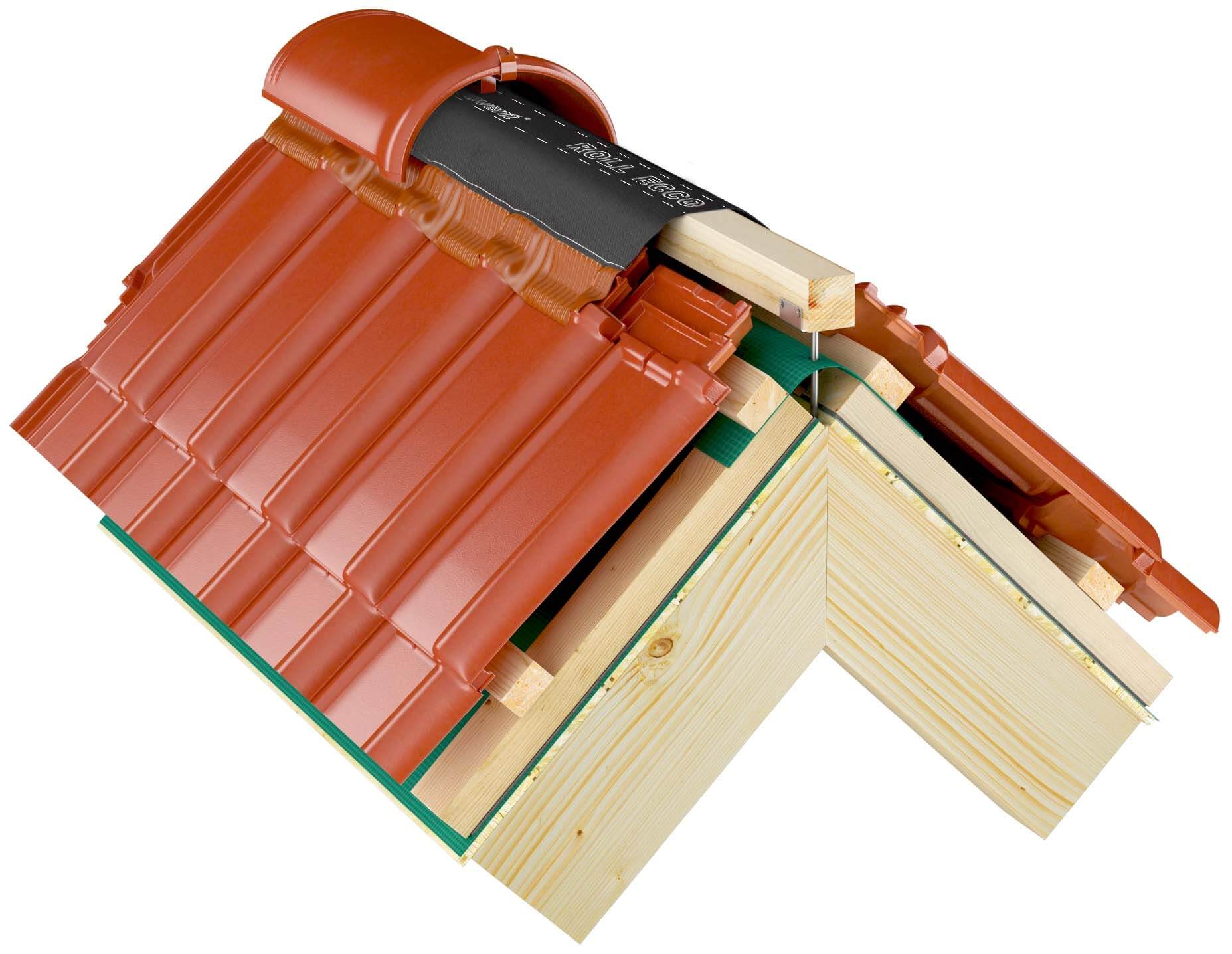 Коньковая лента Eurovent® ROLL ECCO изготовлена из профилированного алюминиевого листа, ПП волокна и бутиловой ленты. Обеспечивает вентиляцию и защиту поверхности крыши от влаги и пыли.