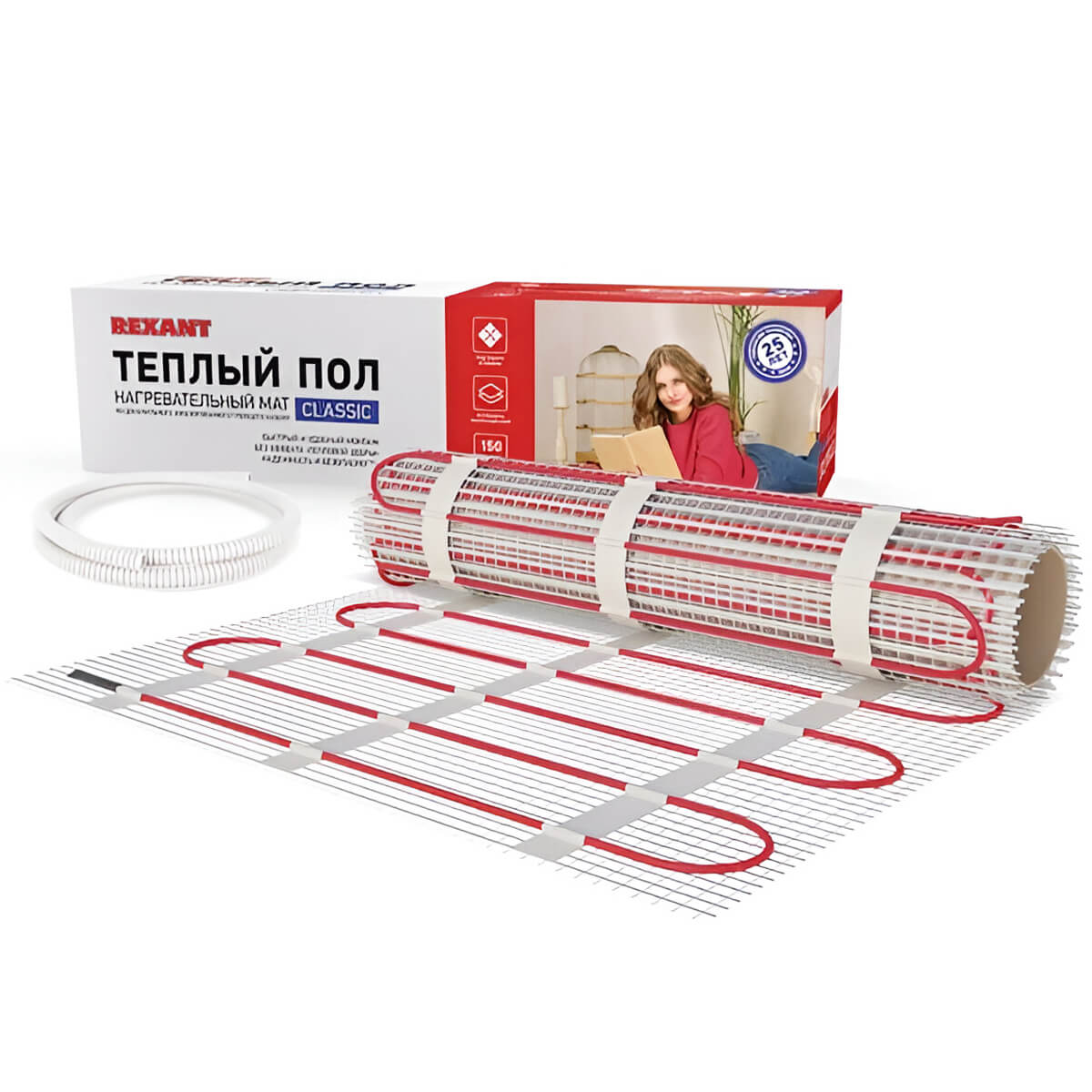 Нагревательные маты REXANT Classic мощностью 150 Вт/м² изготовлены из тонкого двухжильного нагревательного кабеля и предназначены для систем «Теплый пол». Идеальны для комфортного подогрева помещений с покрытием из керамической плитки или других аналогичных материалов. Маты устанавливаются под цементно-песчаную стяжку (толщиной около 20 мм) или плиточный клей (слоем 5-7 мм).