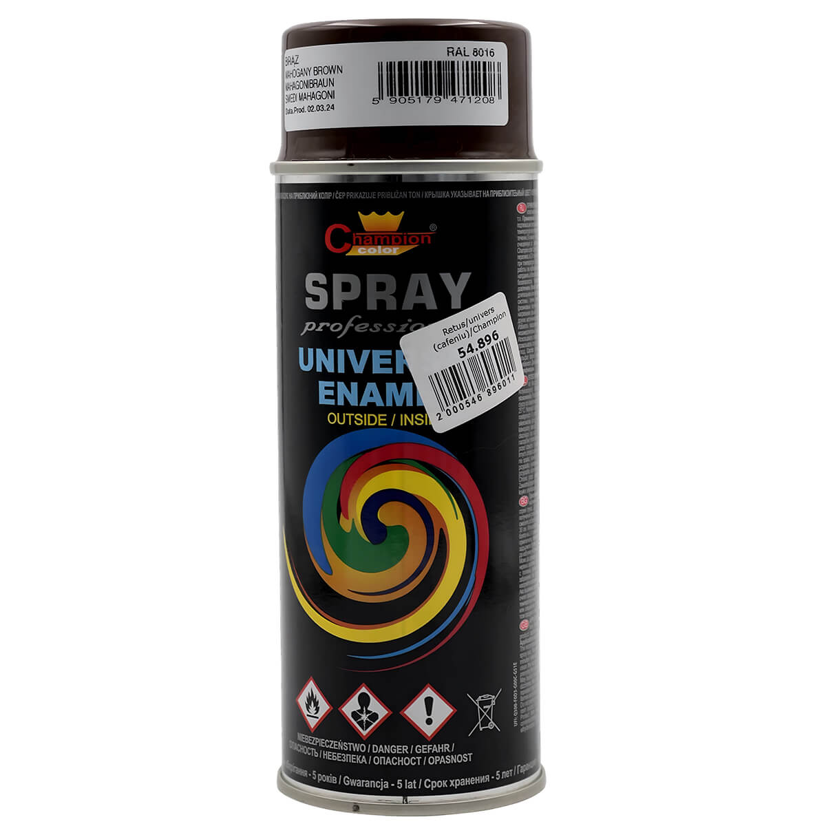 Эмаль аэрозольная Champion Color UNIVERSAL ENAMEL коричневый глянцевый RAL 8016 400 мл — универсальное решение для декоративной и защитной окраски поверхностей в насыщенный коричневый оттенок с эффектом глянца. Подходит как для ремонта, так и для творческих проектов.
