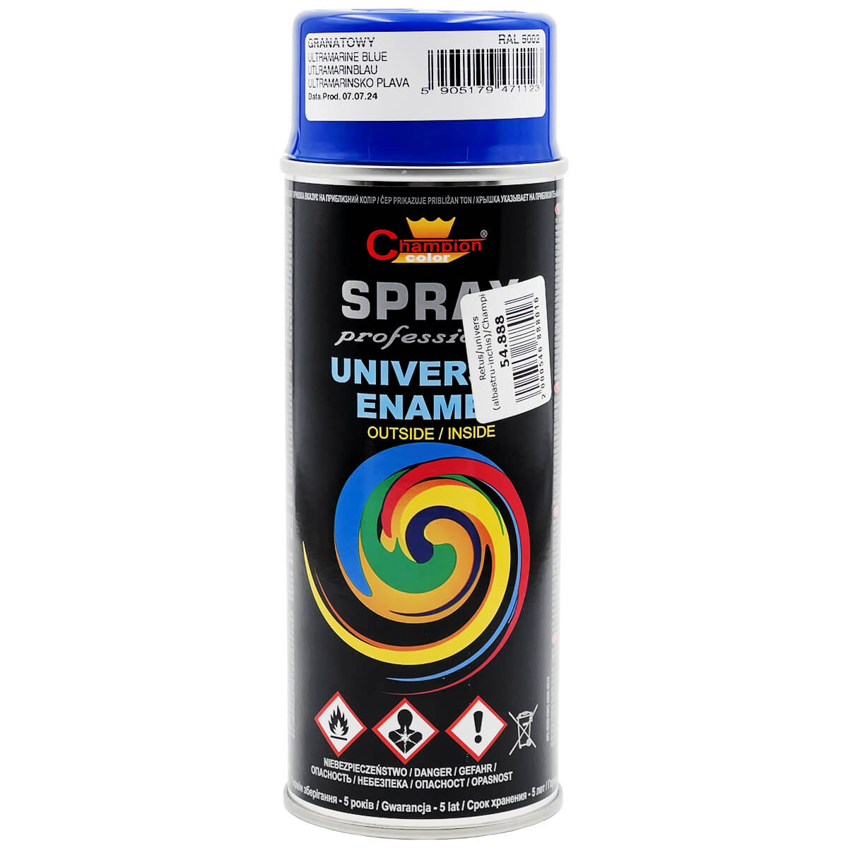 Эмаль аэрозольная Champion Color UNIVERSAL ENAMEL темно-синий глянцевый RAL 5002 400 мл — универсальное решение для декоративной и защитной окраски поверхностей в насыщенный темно-синий оттенок с эффектом глянца. Подходит как для ремонта, так и для творческих проектов.