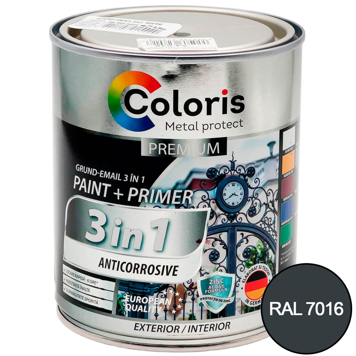 Грунт-эмаль антикоррозионная Coloris Premium 3 в 1, антрацит RAL7016, 2.7 л — это современное решение для защиты и окрашивания металлических поверхностей. Объединяет в себе свойства грунта, преобразователя ржавчины и декоративной эмали, позволяя упростить процесс покраски без потери качества.