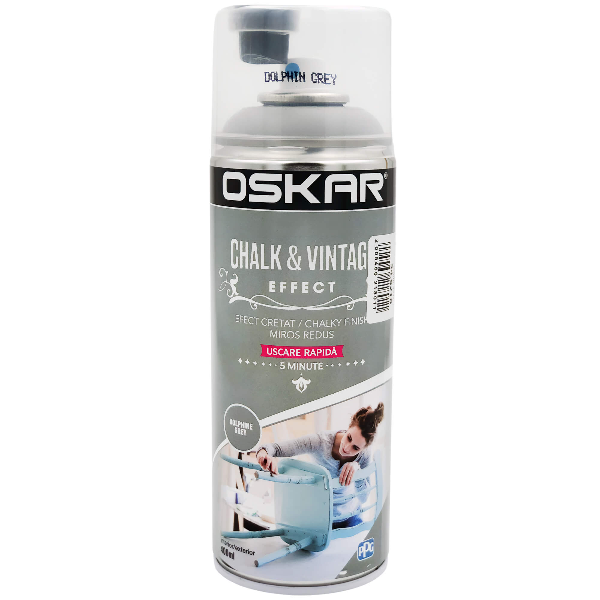 Краска с эффектом chalky finish для внутренних и наружных работ OSKAR CHALK & VINTAGE EFFECT Dolphin Grey, матовый 400 мл