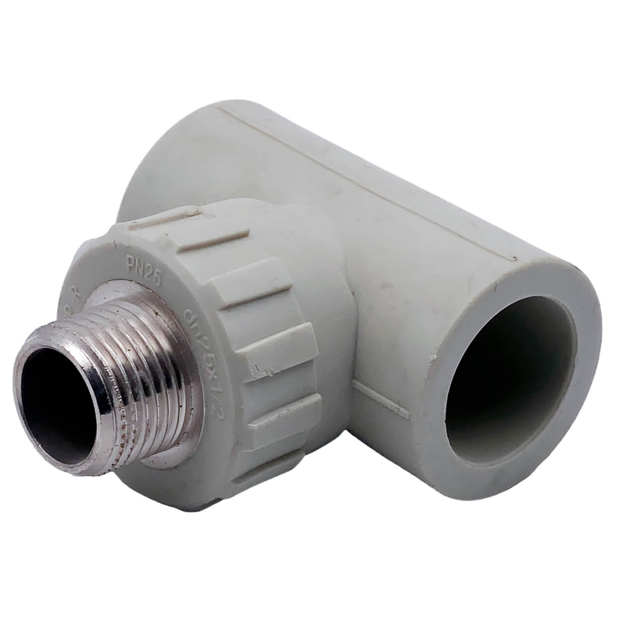Полипропиленовый тройник комбинированный, серого цвета, размером 25 х 1/2 дюйма НР (Папа). Используется для соединения трех труб диаметром 25 мм с резьбовым соединением 1/2 дюйма НР (Папа). Изготовлен из прочного полипропилена. Обеспечивает надежное и герметичное соединение. Идеально подходит для различных систем водоснабжения.