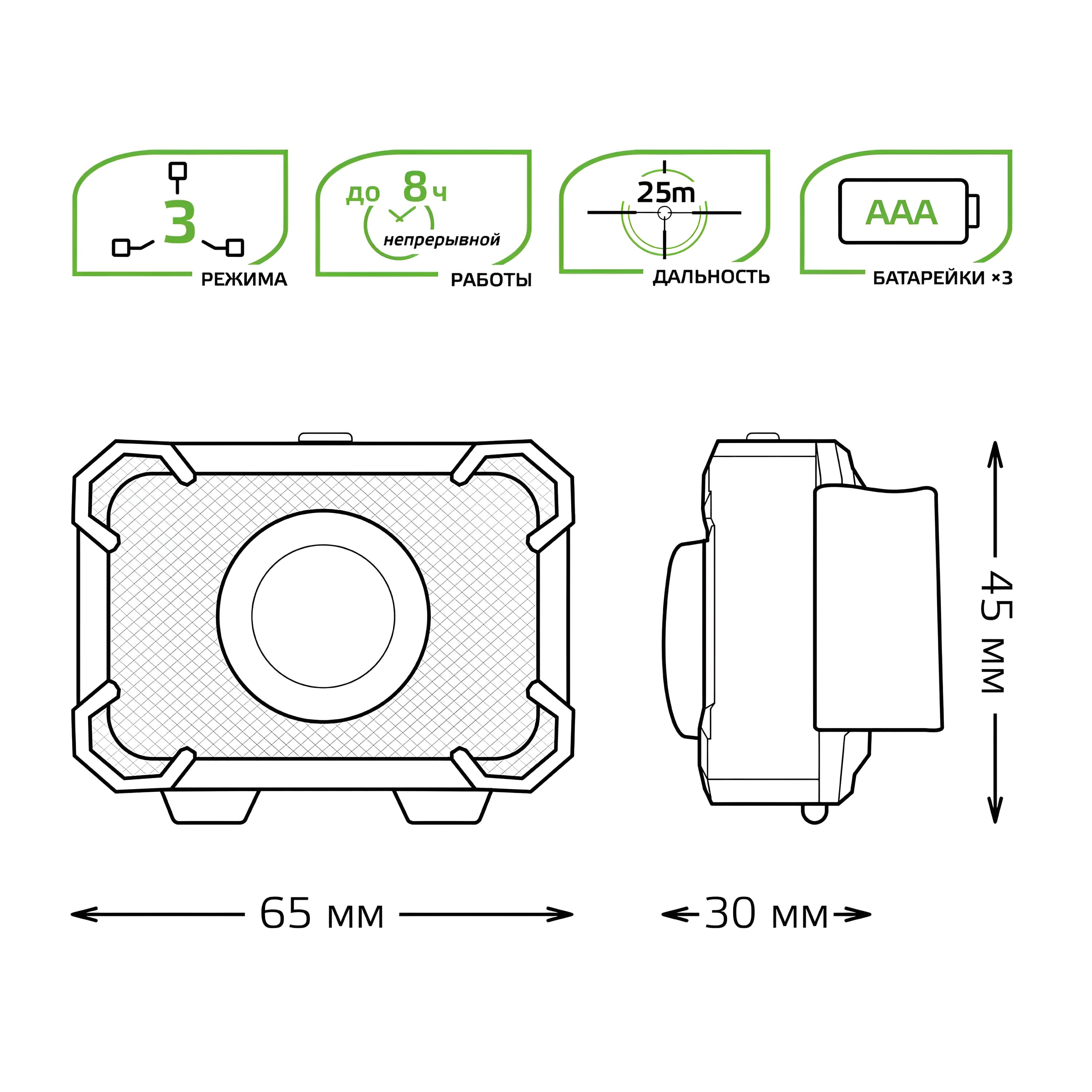 Фонарь налобный Gauss GFL305 - надежный инструмент. Тип: налобный, материал корпуса - пластик. Светодиодный источник света с 3 режимами работы, мощностью 3 Вт и световым потоком 150 Лм. Время работы 8 часов, дальность освещения 25 м. Вес 0,03 кг, габариты 65х45х24 мм.