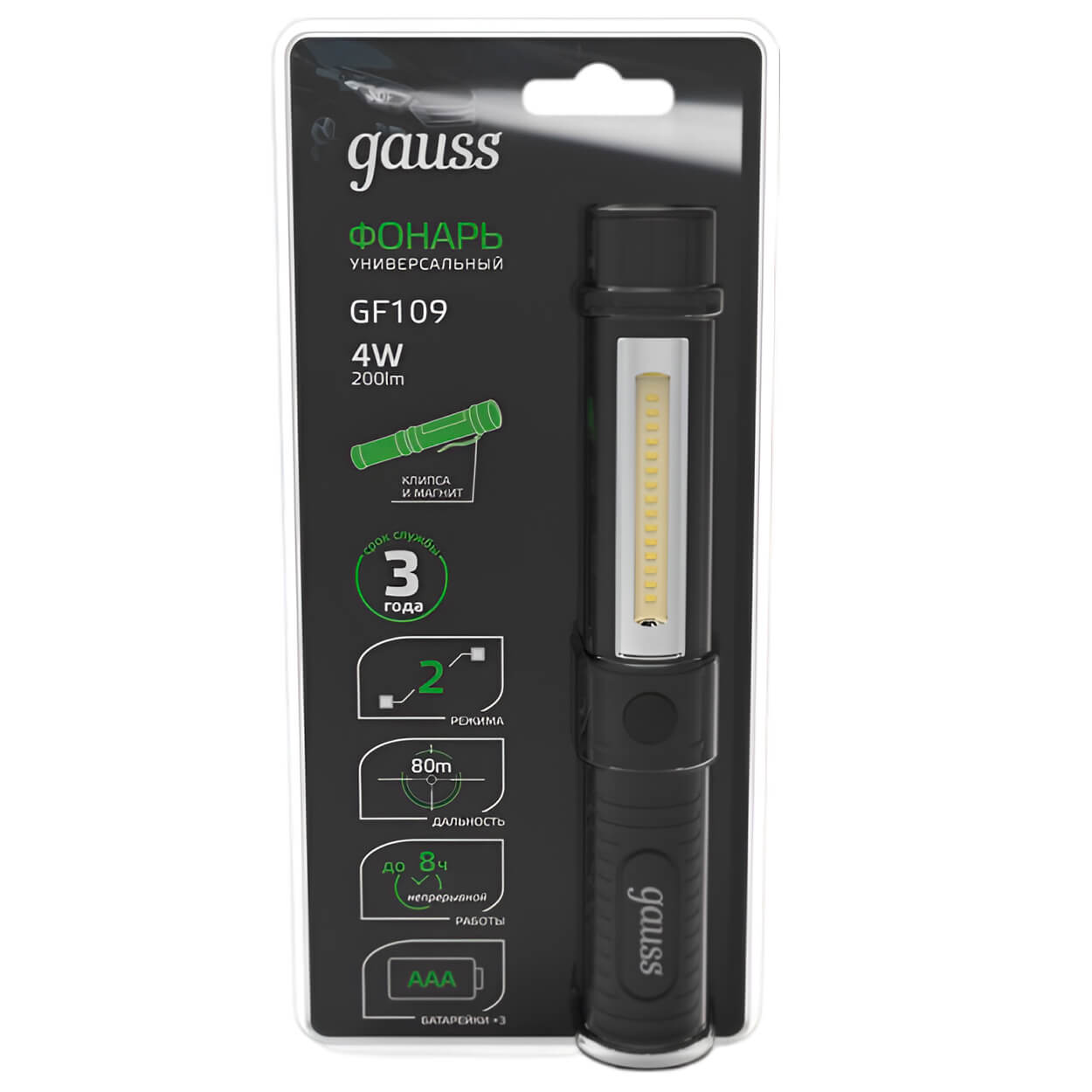 Фонарь ручной Gauss GFL109 4 Вт 200 лм 3xAAA LED IP33 - компактный и легкий, идеально подходит для прогулок и путешествий. Работает от батареек. Оснащен ярким современным светодиодом с качественным светоотражателем для мощного и дальнего освещения.