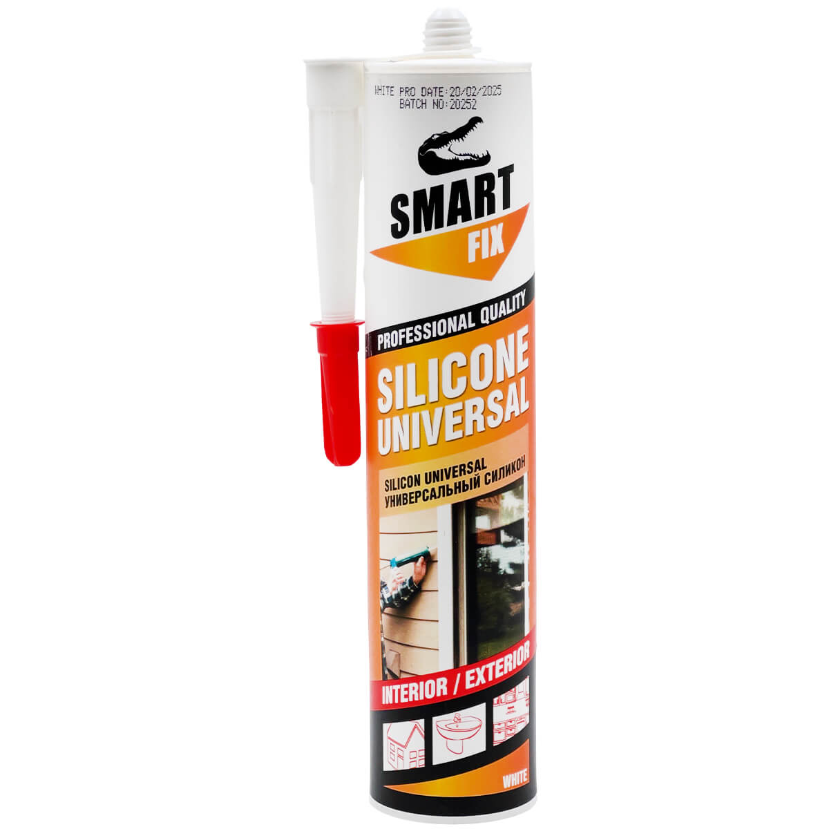 Силиконовый герметик универсальный Smart Fix белый 310 г для ванной кухни и стекла применяется для надежной изоляции швов и стыков в помещениях с повышенной влажностью и перепадами температур. Подходит для ремонта сантехники, установки стеклянных элементов и защиты соединений от проникновения воды и воздуха.