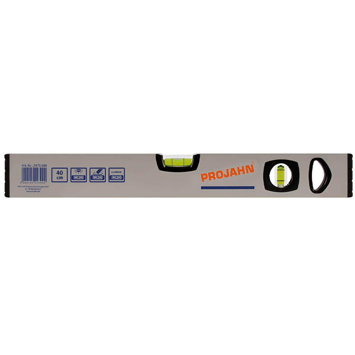 Алюминиевый уровень Projahn 40 см, 2975-040 – это надежный инструмент для точных измерений. Имеет два акриловых глазка с защитой от УФ-излучения для горизонтальных и вертикальных измерений. Погрешность не превышает 0,5 мм/м, что обеспечивает высокую точность. Профиль толщиной 1,0 мм и амортизирующие торцевые заглушки предотвращают повреждения при падении.