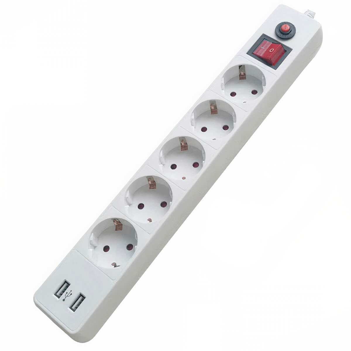 Колодка электрическая Tehelectro-SV с заземлением 5 розетки + 2 USB порта 16А 250 В 3.5кВт