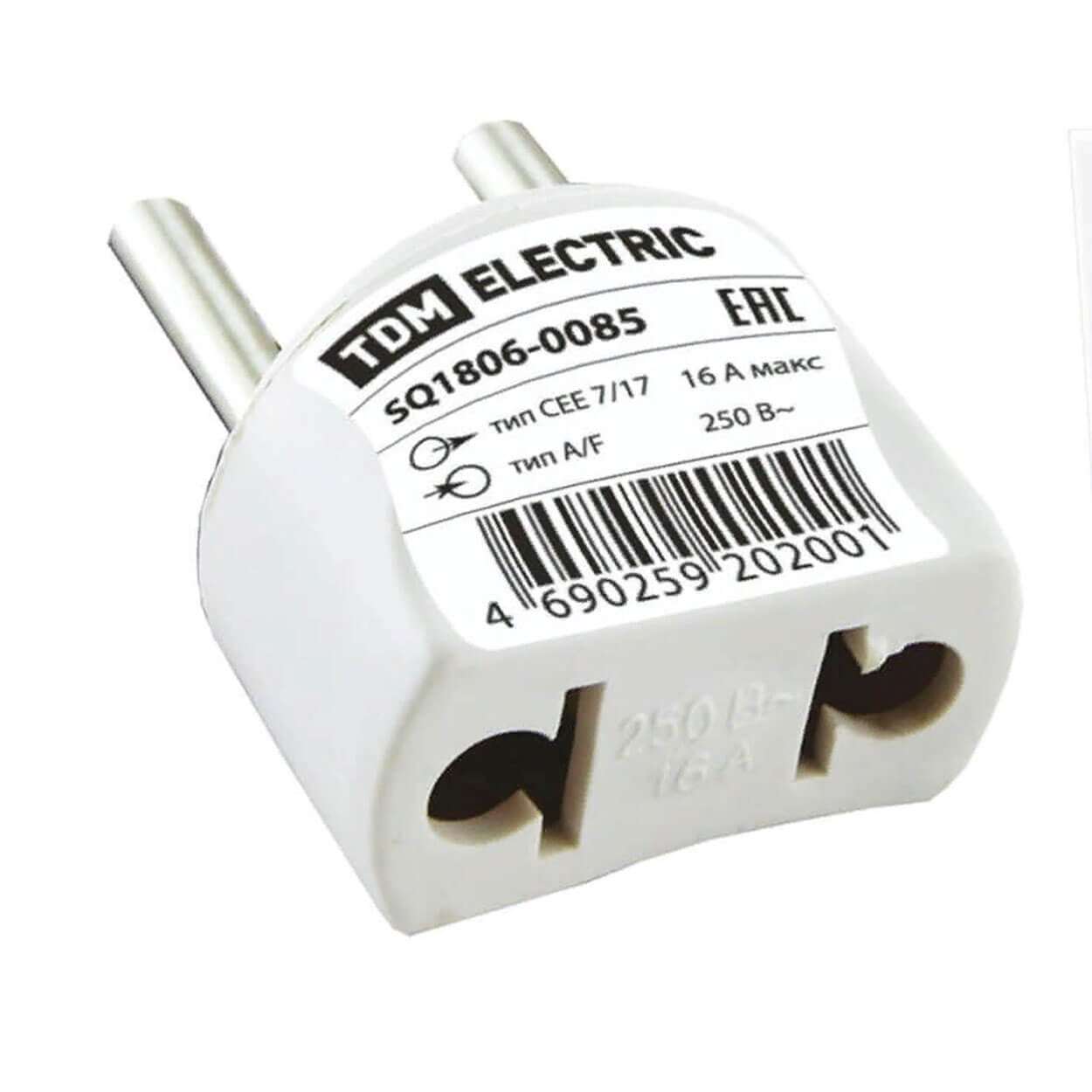 Вилка-переходник TDM (тип С1-В - тип A/F), круглая, 16 A, 250 В, белая SQ1806-0085 - идеальное решение для подключения устройств с американскими разъемами в европейских розетках. Номинальная сила тока 16 А, напряжение сети 220 В, максимальная нагрузка до 3500 Вт. Компактный и надежный переходник для удобства в использовании.