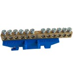 Нулевая шина, крепится на центр через угловой изолятор непосредственно на панель щита. Используется для присоединения защитных или силовых нулевых проводов кабеля в электрическом щитке. Корпус выполнен из латуни. При подключении к шинам многожильных проводов требуется оконцевание их наконечниками-гильзами.