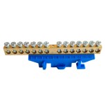 Нулевая шина, крепится на центр через угловой изолятор непосредственно на панель щита. Используется для присоединения защитных или силовых нулевых проводов кабеля в электрическом щитке. Корпус выполнен из латуни. При подключении к шинам многожильных проводов требуется оконцевание их наконечниками-гильзами.
