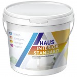 Краска водоэмульсионная акриловая Haus Interior Standard — это удобное решение для обновления интерьера. Белая матовая основа легко ложится на стены и потолки, придавая поверхности чистый и ровный вид.
