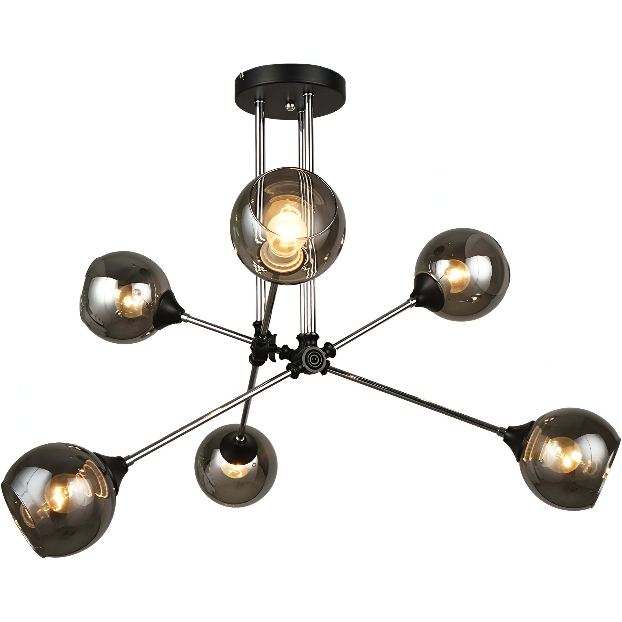 Эта впечатляющая потолочная люстра O’LESSYA станет истинным украшением вашего интерьера. Сочетание блестящего хрома и элегантного черного цвета придает этому светильнику выразительный и модный вид. С дымчатыми стеклянными плафонами и ровным геометрическим дизайном, люстра идеально вписывается в современные жилые или коммерческие пространства.