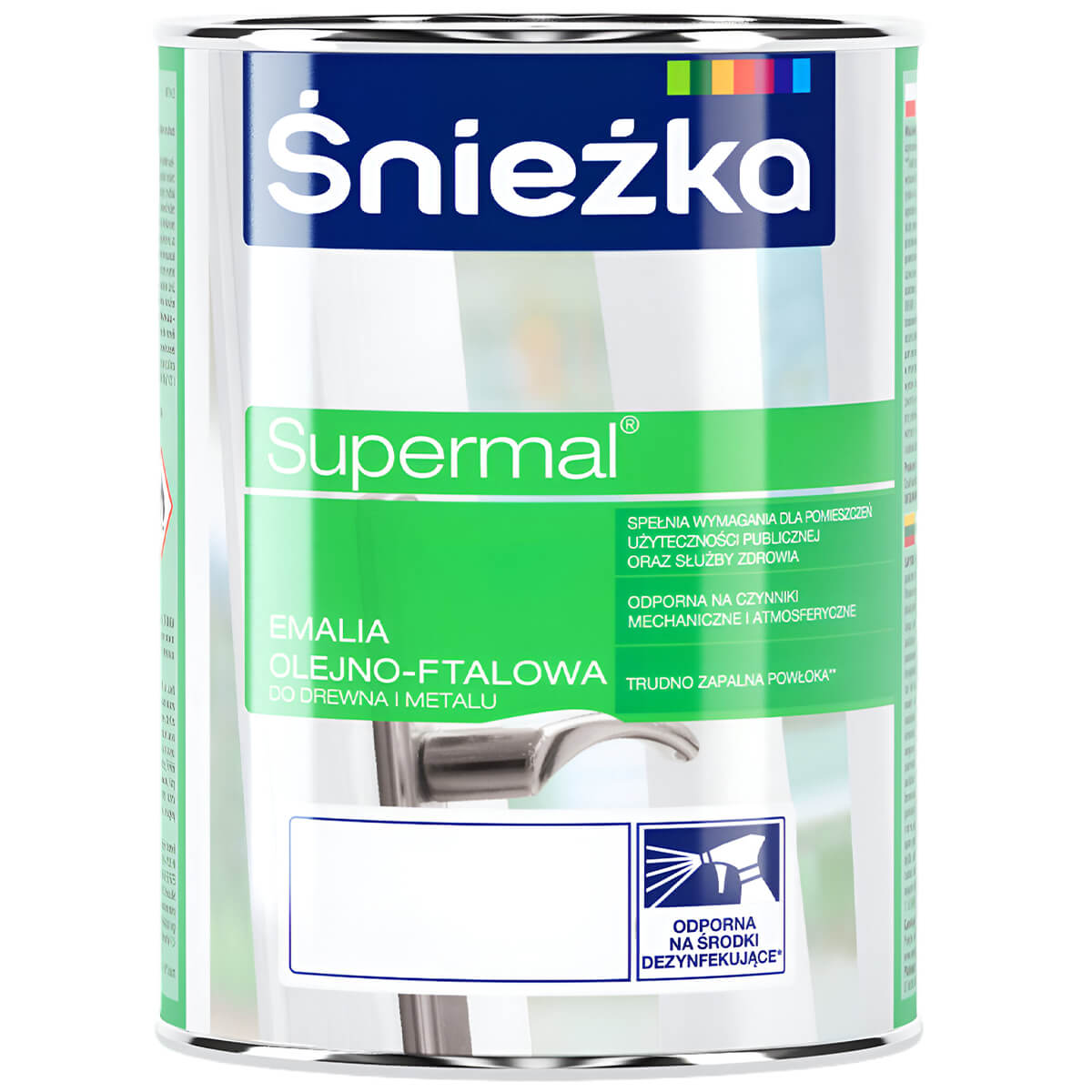 Краска масляно-фталевая Sniezka Supermal белый глянец RAL9003 0,4 л - Данная краска имеет отличную стойкость к механическим и атмосферным воздействиям. Обладает стойким и ярким цветом. Придерживается всем требованиям общественных зданий и учреждений здравоохранения. Отличный расход и превосходная покрывающая способность.