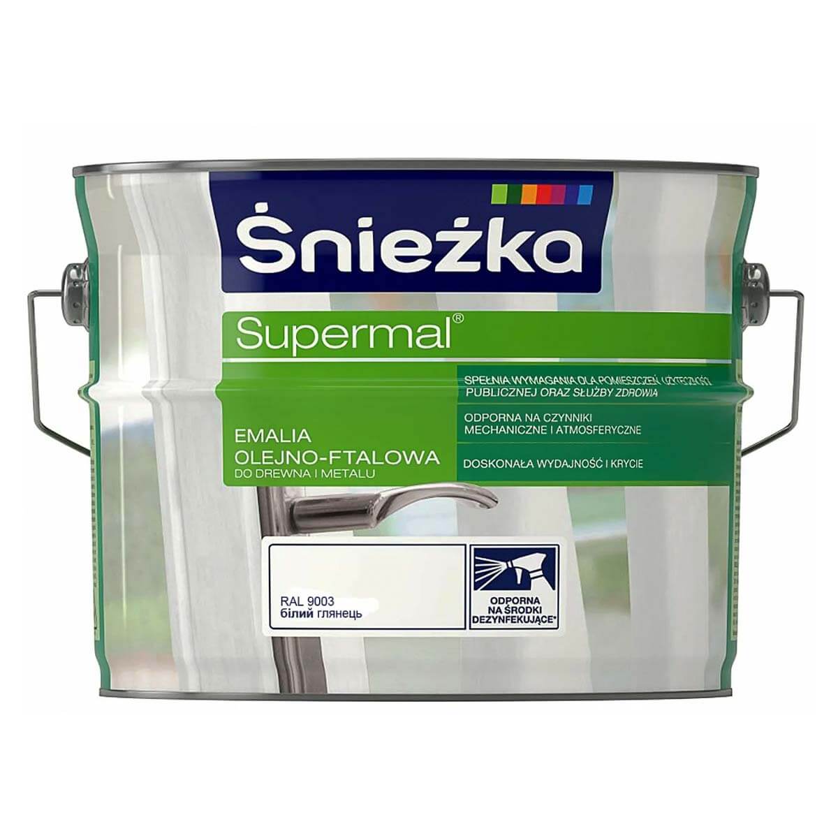 Краска масляно-фталевая Sniezka Supermal белый глянец RAL9003 2,5 л - Данная краска имеет отличную стойкость к механическим и атмосферным воздействиям. Обладает стойким и ярким цветом. Придерживается всем требованиям общественных зданий и учреждений здравоохранения. Отличный расход и превосходная покрывающая способность.