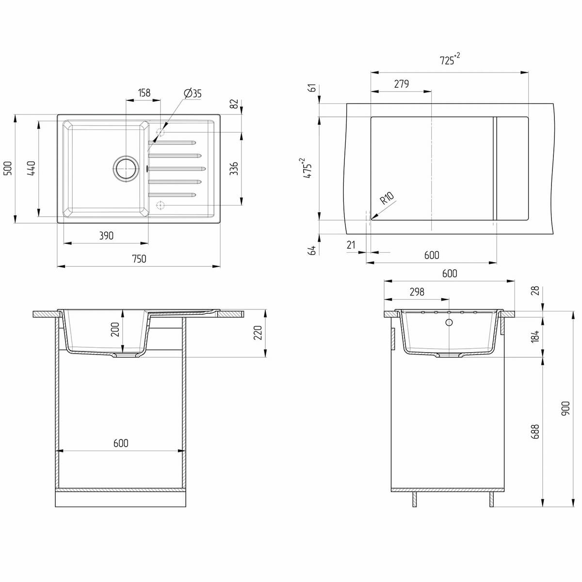 - Материал высочайшего качества: Композит из натурального мрамора и полиэфирных смол в 8 раз прочнее натурального камня, обладает устойчивостью к повреждениям, термическим воздействиям и кипятку.