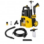 С мощным электродвигателем и алюминиевой помпой, мойка-пылесос HUTER имеет большой ресурс и готова к работе в любых условиях эксплуатации. Складная телескопическая рукоятка, съемный контейнер для сбора пыли емкостью 2 литра, многоразовый моющийся фильтр для режима пылесоса, шланг высокого давления длиной 8 метров, широкий набор аксессуаров для режимов мойки и пылесоса, пеногенератор в комплекте и большие колеса - все это делает мойку-пылесос HUTER идеальным выбором для тех, кто ищет удобство и эффективность в одном устройстве.