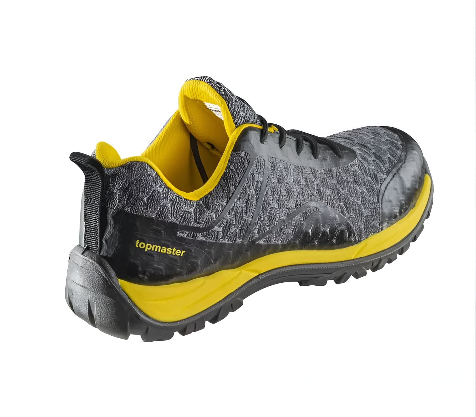 Полуботинки рабочие Top Master WSS1C (арт. 553432) в серо-желтом цвете - идеальное сочетание комфорта и безопасности. Выполнены из дышащего текстиля с легким спортивным дизайном по технологии Flyknit. Подошва E-TPU двойной плотности обеспечивает надежное сцепление. Защитный колпачок из композитного материала обеспечивает безопасность без металла. Сертифицированы по стандарту CE.