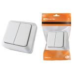Двухклавишный выключатель открытая установка TDM Ладога белый SQ1801-0003