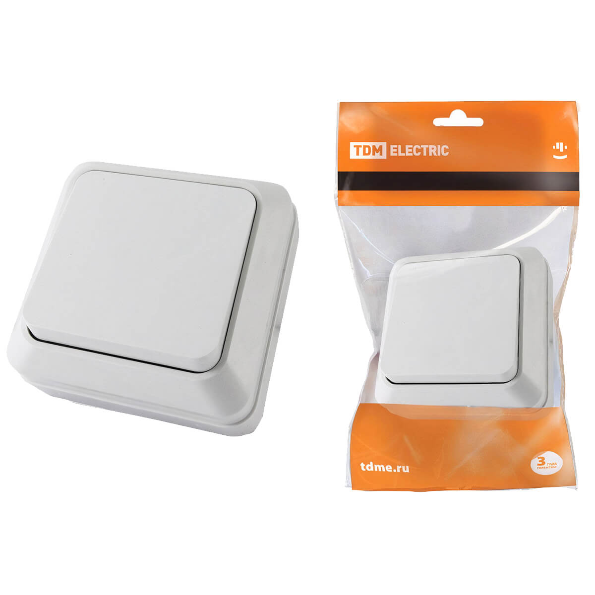 Одноклавишный выключатель открытая установка TDM Ладога белый SQ1801-0001
