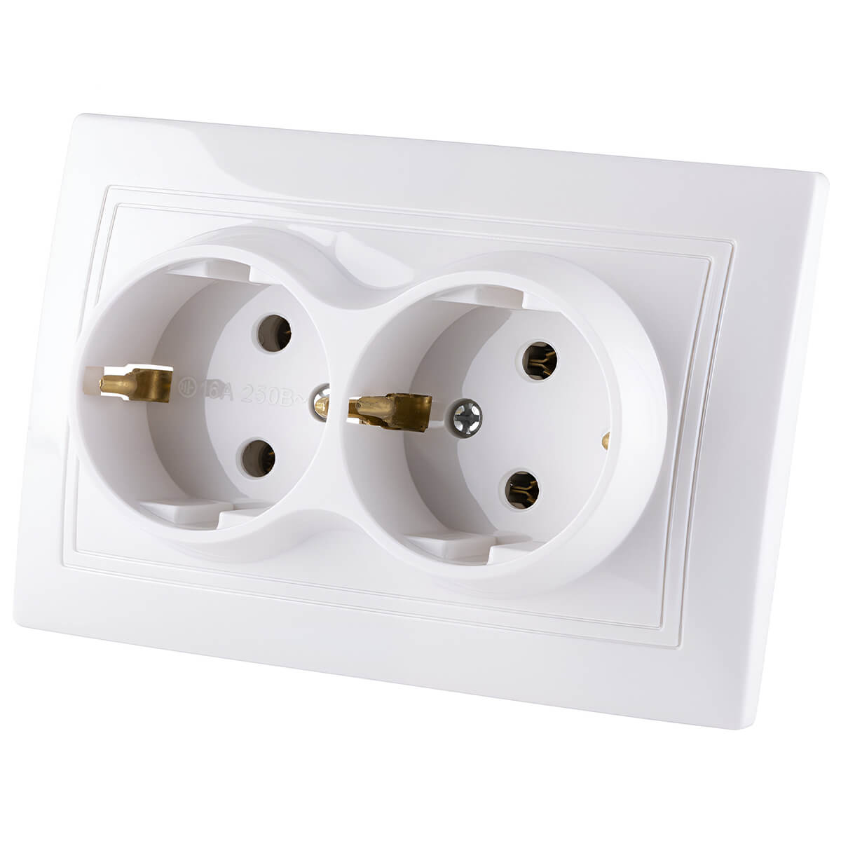 Розетка двойная 1000kW LUNA с заземлением, 2P, 16A, белая KW-0206-0412