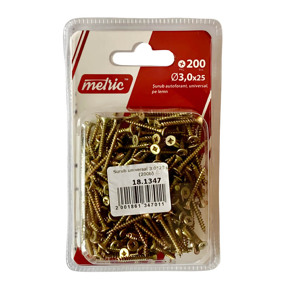 Саморезы универсальные по дереву Metric 3х25 мм оцинкованный 200 штук (Арт. 88581) - Для дополнительной информации обратитесь к консультанту магазина VERITAN.