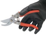 Эта модель имеет удобную и прочную рукоятку, которая хорошо лежит в руке. Секатор оснащен фиксатором лезвий который обеспечивает безопасное использование секатора.