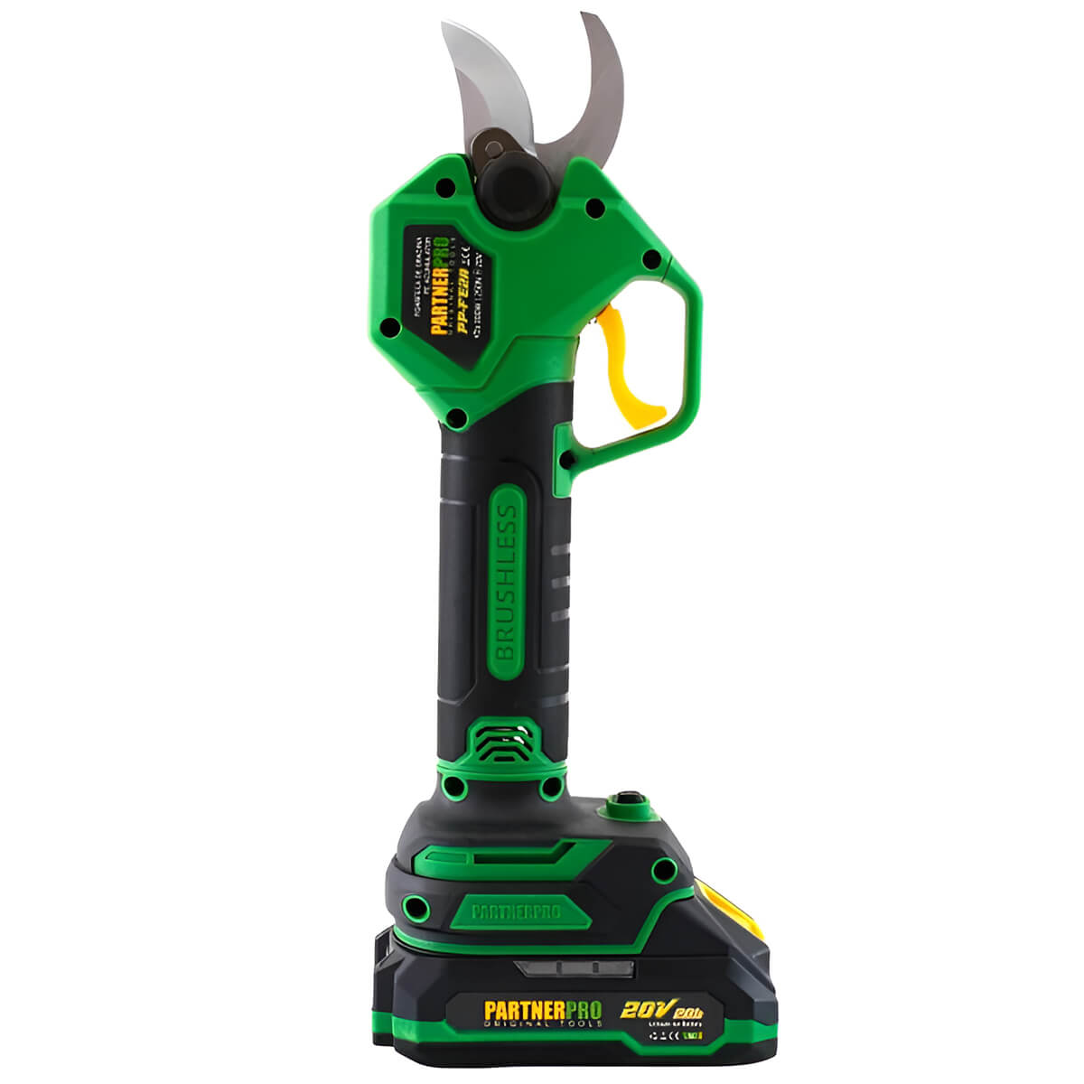 Секатор аккумуляторный PartnerPro PP-FE2A 20 В, 2 Ач, 25 мм, бесщеточный - удобный инструмент для быстрой обрезки веток в саду без лишних усилий. Подходит для ухода за деревьями, кустарниками, виноградом и декоративными растениями. Бесщеточный двигатель работает стабильно, а рез получается ровным и аккуратным - это важно, чтобы растения быстрее восстанавливались после обрезки.