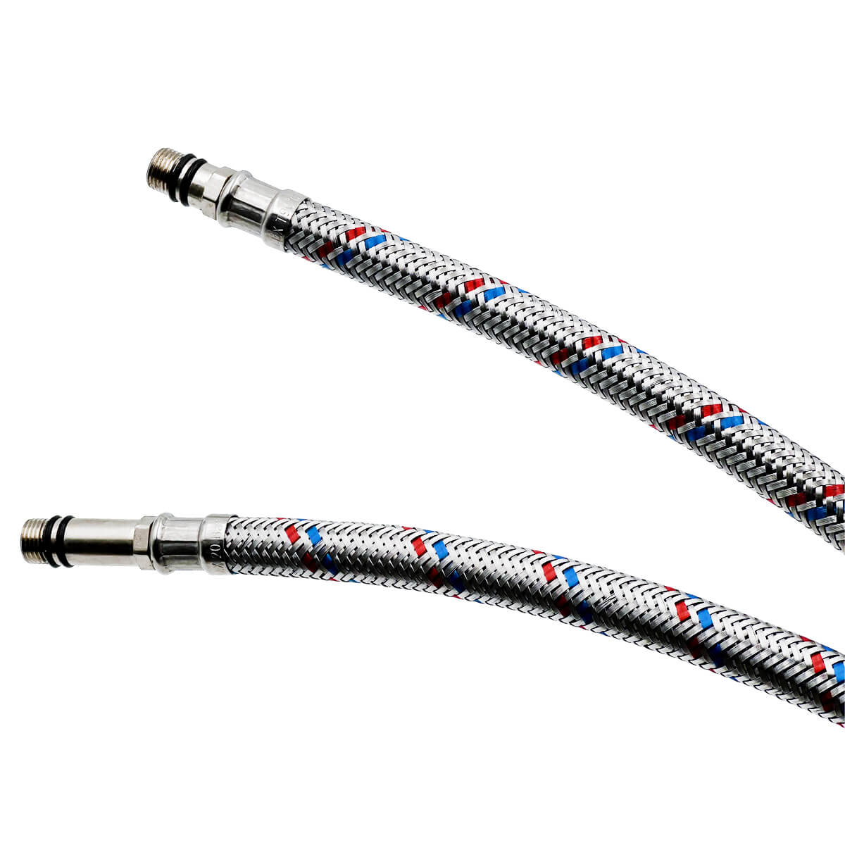 Идеально подходит для подключения смесителей в ванной комнате или на кухне, обеспечивая надежное и герметичное соединение. Металлическая оплетка увеличивает устойчивость к механическим повреждениям и износу.